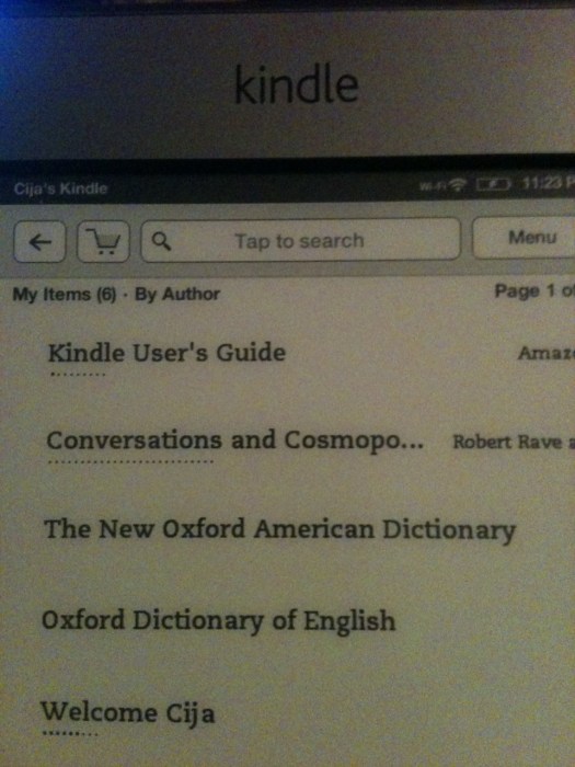 My birthday Kindle from the b.f. and my brother (love you two) has finally arrived and I downloaded my first book…Robert Rave’s Conversations and Cosmopolitans. I wanted to make sure my first purchase would be a must-read; can’t wait to get started!