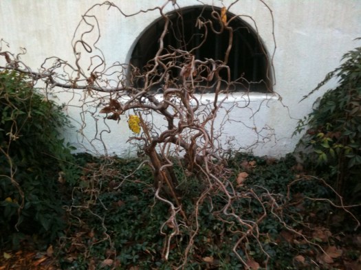 Check out these gorgeous twisted tangled Tim Burton-esque branches I saw while walking to the courthouse for jury duty this morning! The juxtaposition of the branches in the foreground and the barred window in the background attracted me as well. Doesn’t that window look like a prison cell?